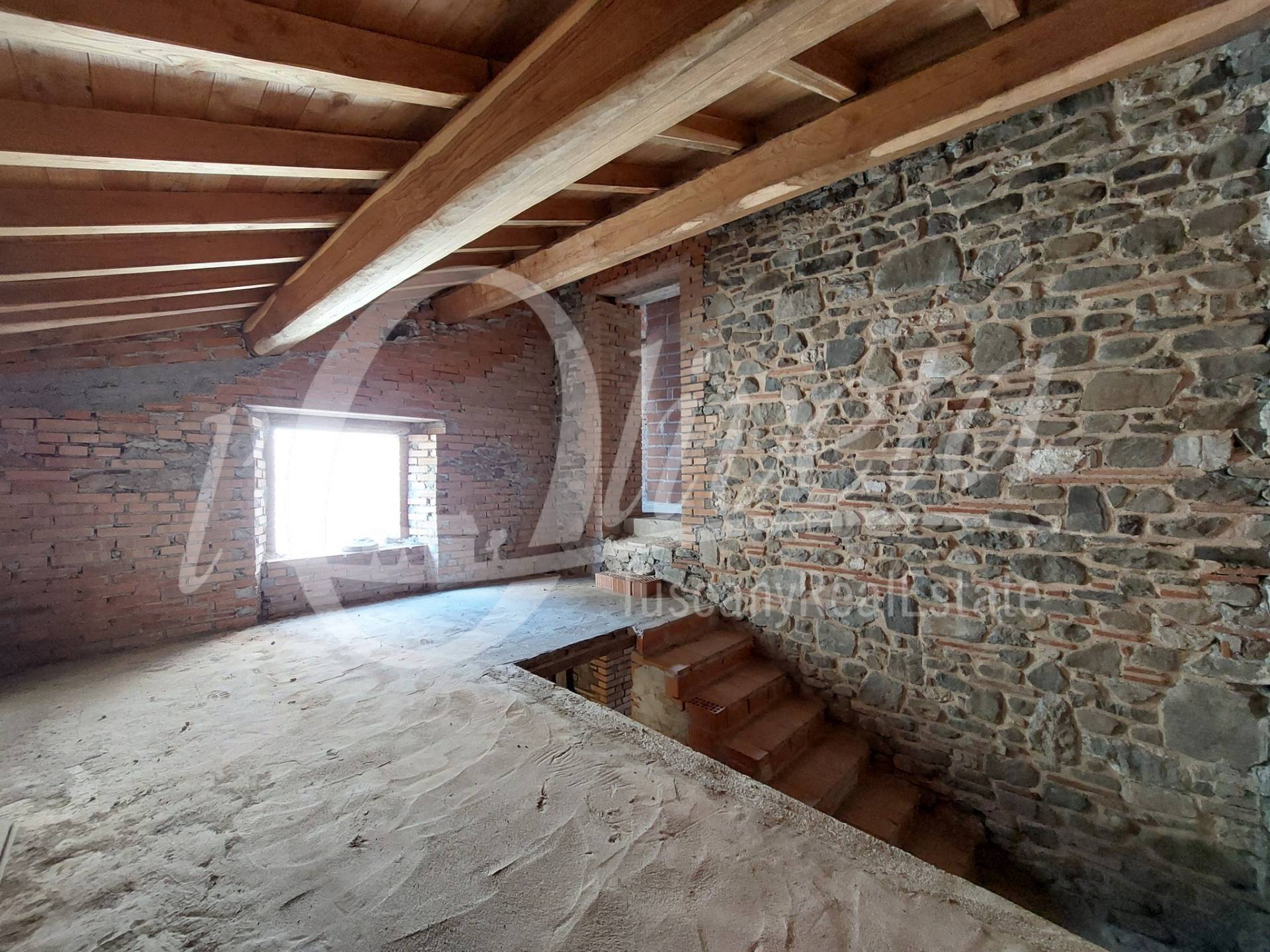 In the village of Pescaglia, seat of the municipality of the homonymous territory, we offer for sale this property consisting of three units. The property is located on the edge of the ancient village, bordered to the east by the walls of the old Renaissance fortress, a short distance from the private car park and adjacent to a small public car park, and is accompanied by two non-contiguous plots of land. The location is excellent since, unlike most of the houses in the hamlet, it can be reached by car. The first is in an unfinished state, the second needs renovation but is habitable, and the third consists of a building used as a cellar/garage.