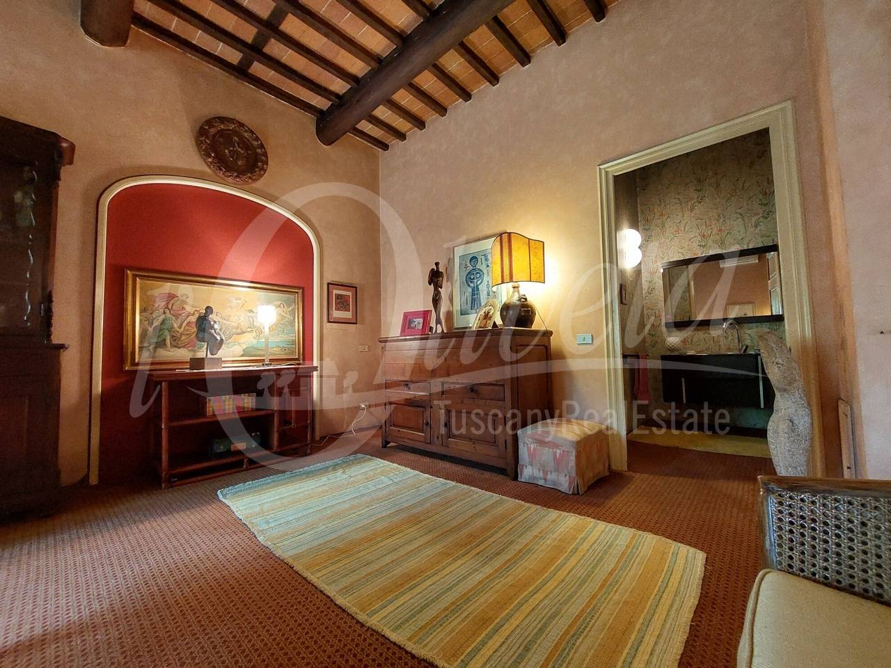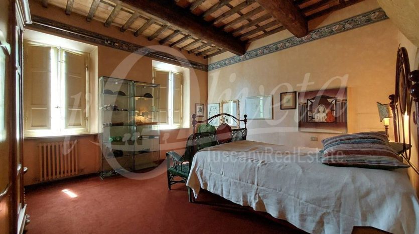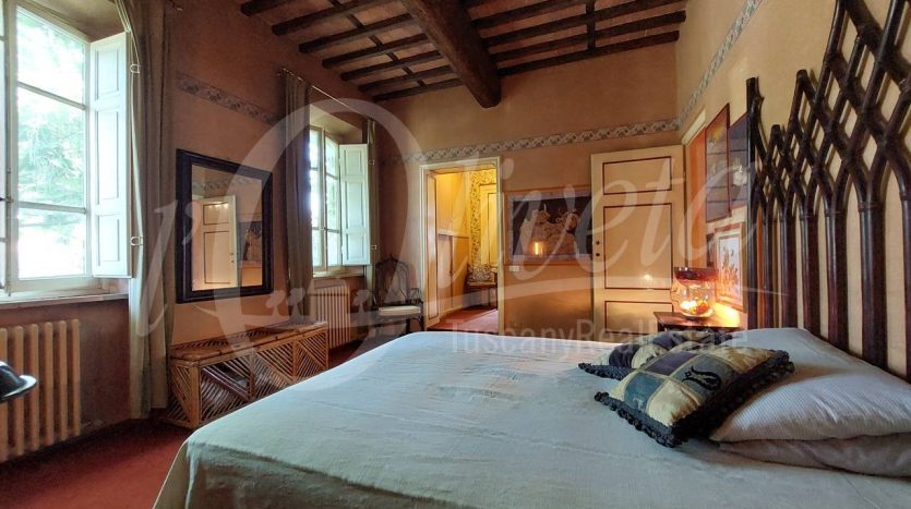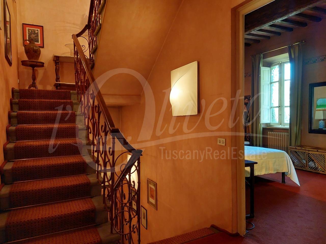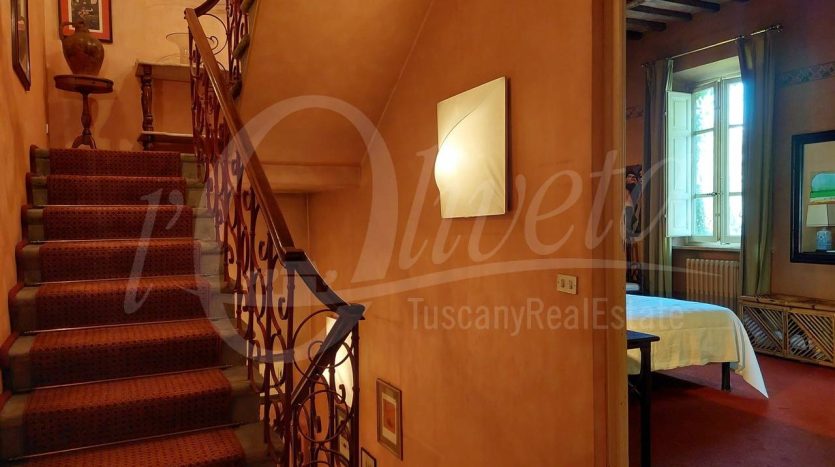 Salendo la scala in pietra con elegante ringhiera in ferro battuto, si accede al primo piano dove si sviluppa la zona notte, in cui si trovano un ripostiglio/cabina armadio, tre grandi camere matrimoniali, ciascuna delle quali con bagno en suite dotato di vasca o doccia.