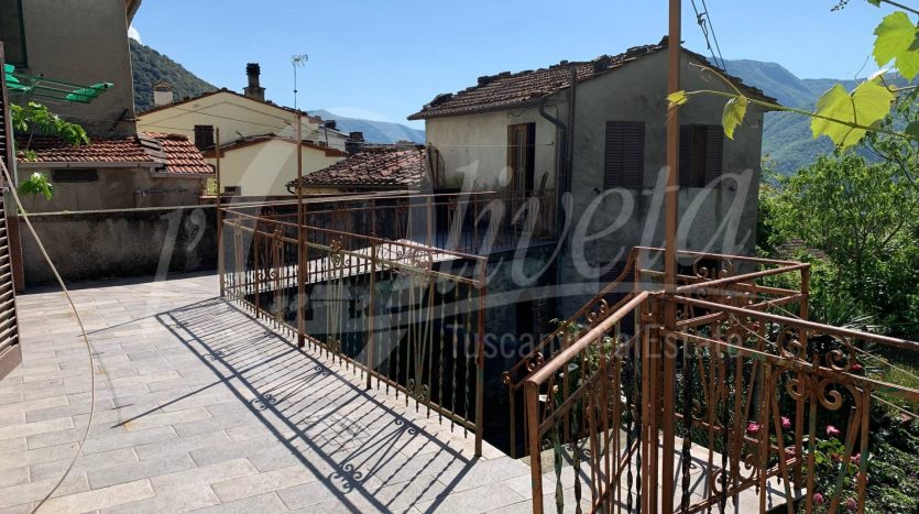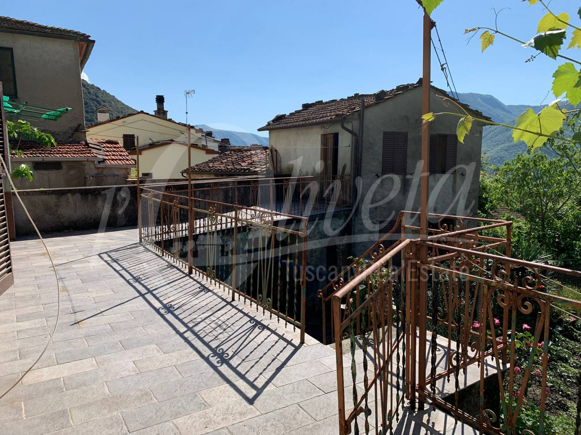 La proprietà si compone di una casa di dimensioni generose e di una piccola casa in aderenza, tra loro comunicanti in passato. Le due case si affacciano su una magnifica terrazza assolata rivolta sui colli della Val di Lima, che a sua volta, grazie ad una scala in pietra, può godere della resede privata e del piccolo orto dove è possibile realizzare un giardino fiorito con piante aromatiche ed organizzare uno spazio verde per il relax e i momenti conviviali.